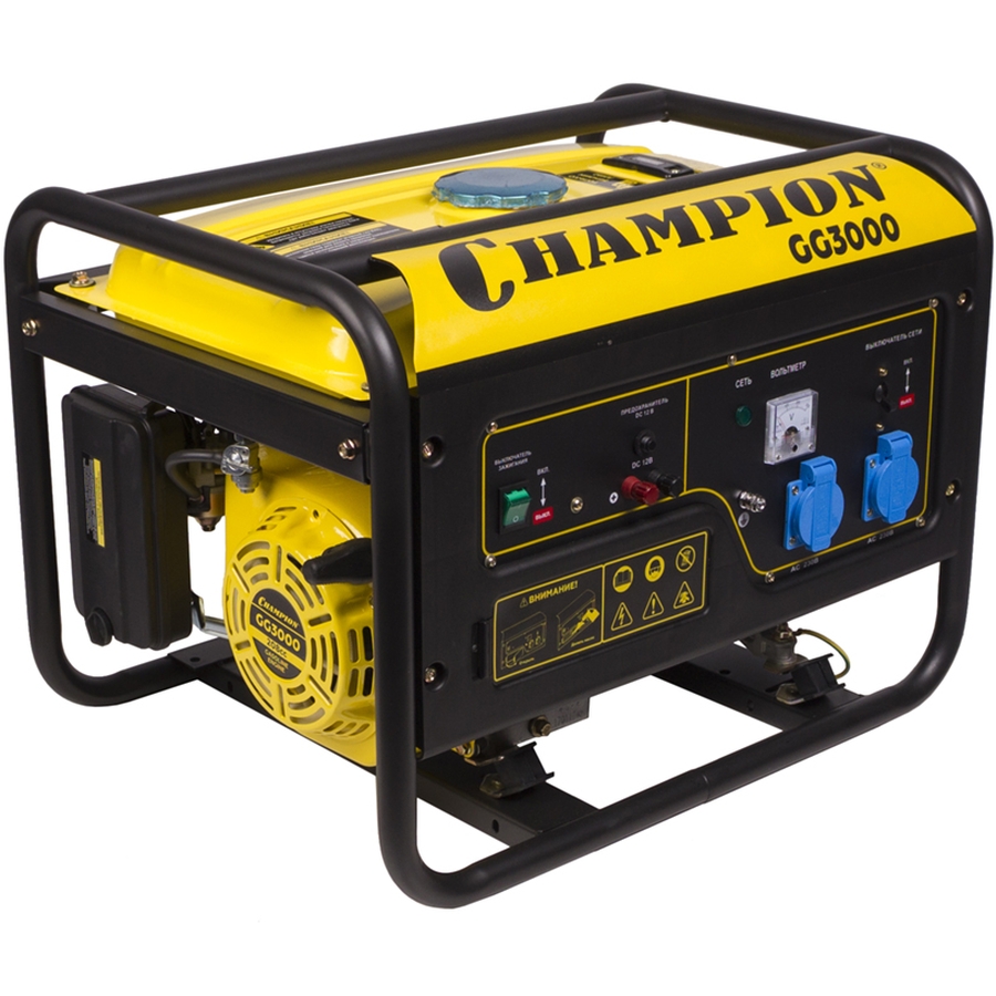 Генератор бензиновый CHAMPION GG3000 предназначен для снабжения электроэнергией дачных домов, строительных площадок и т.д. К электростанции Champion GG3000 можно подключить электроприборы, суммарной мощностью 2.3 кВт, и с пиковыми нагрузками до 2,5 кВт. Эта модель будет интересна при строительстве дачных домов и при снабжении электричеством небольших торговых павильонов.
