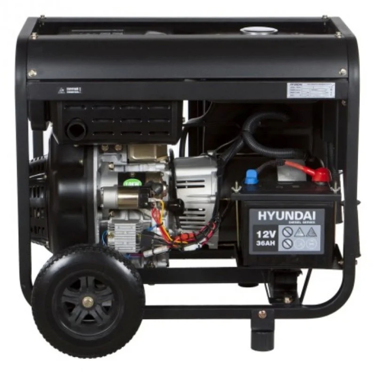 - Два больших колеса и рукоятки упрощают перемещение Hyundai DHY 8500LE.