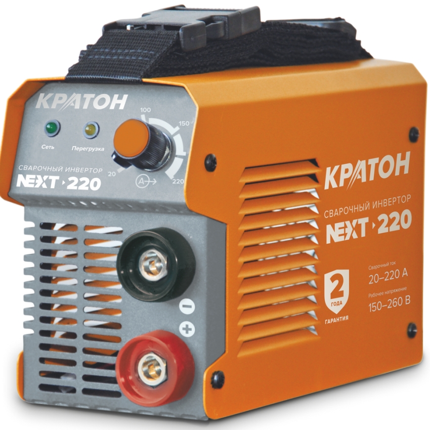 Инвертор сварочный Кратон NEXT-220 предназначен для ручной дуговой сварки постоянным током, штучным плавящимся покрытым металлическим электродом (метод MMA) углеродистых и нержавеющих сталей.