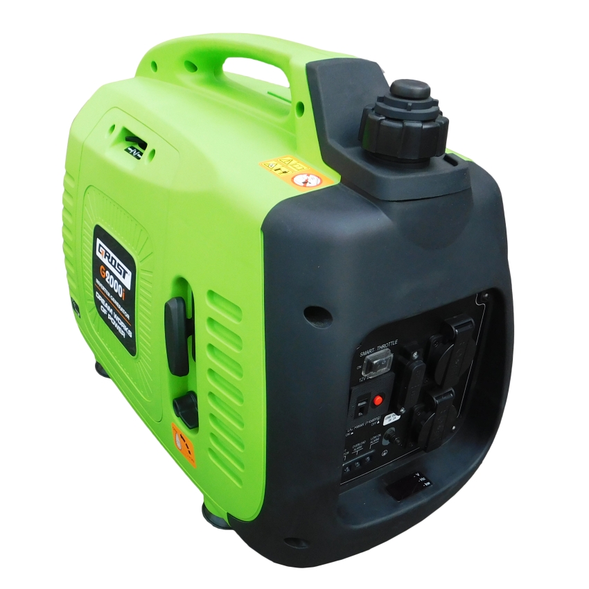 Инверторный генератор GROST G2000i используется для подключения к нему потребителей тока. В генераторе используется инвертор, благодаря которому выходное напряжение и ток намного стабильнее обычных генераторов.