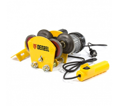 - Прочная конструкция электрической каретки для тельфера DENZEL T-1000;