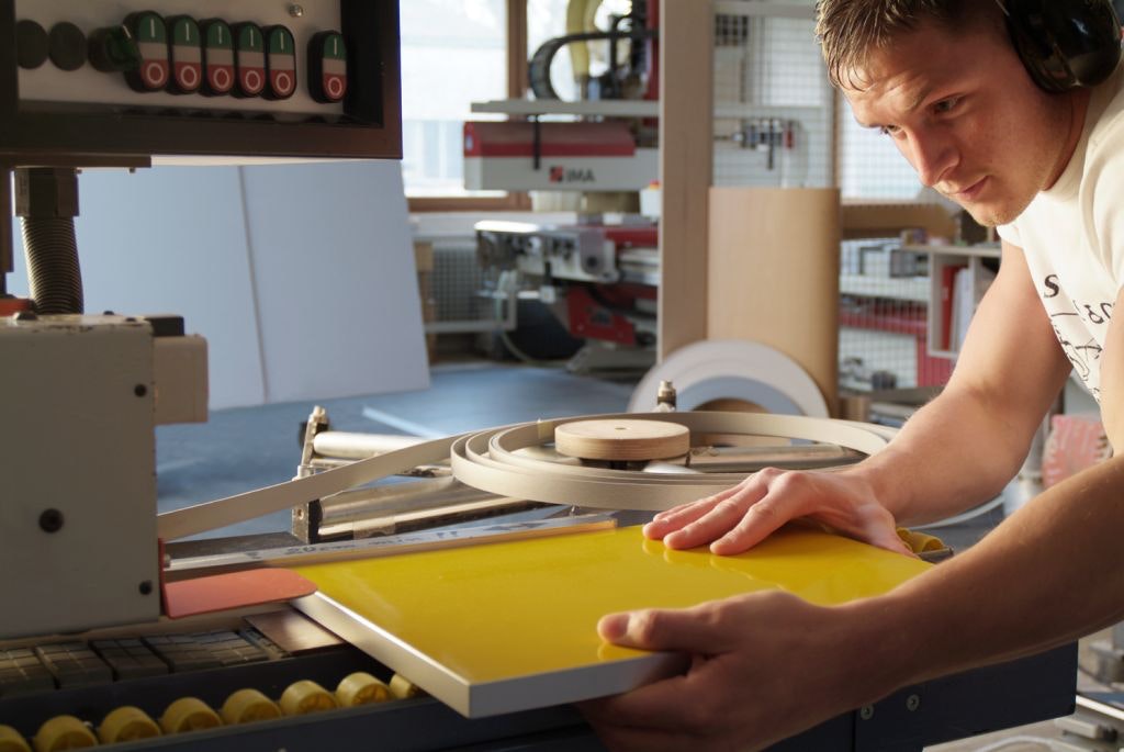 - Плиты, клей и кромочный материал должны иметь комнатную температуру не ниже 18 °С, поэтому при поступлении материала из холодного склада в цех следует выдержать его до приобретения необходимой температуры.