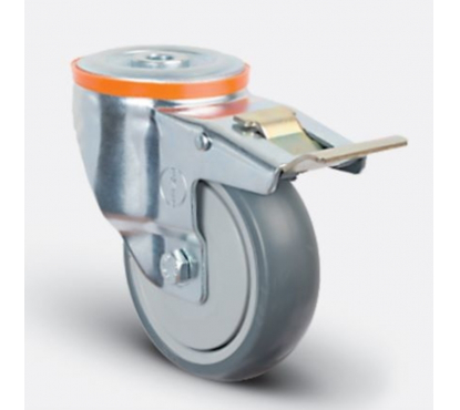 Колесо аппаратное с подшипником поворотное болт M12 с тормозом 100мм EM05 MBT 100 F