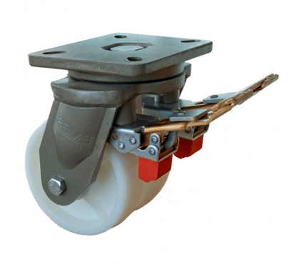 Колесо большегрузное с подшипником нейлоновое сдвоенное поворотное с тормозом 200мм EJ01-HBZ-200-F