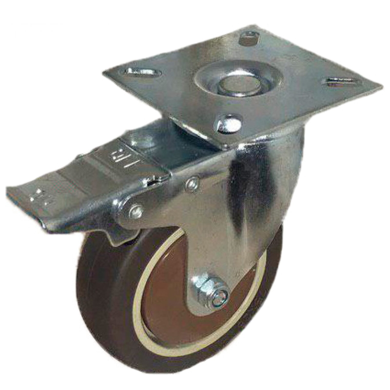 Колесо коричневая мягкая резина поворотное с тормозом металл 50мм SCGB M 25 используется для установки на тележки, контейнеры, стеллажи.