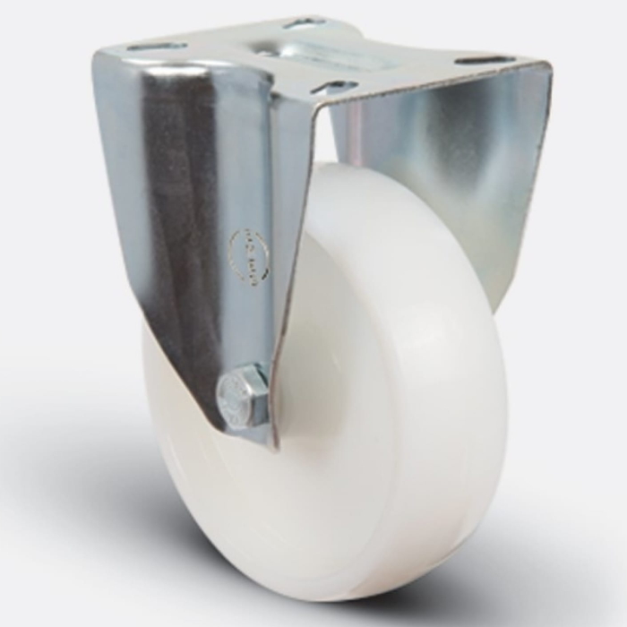 Колесо нейлоновое неповоротное 100мм EM02-ZKZ-100 используется для установки на тележки.