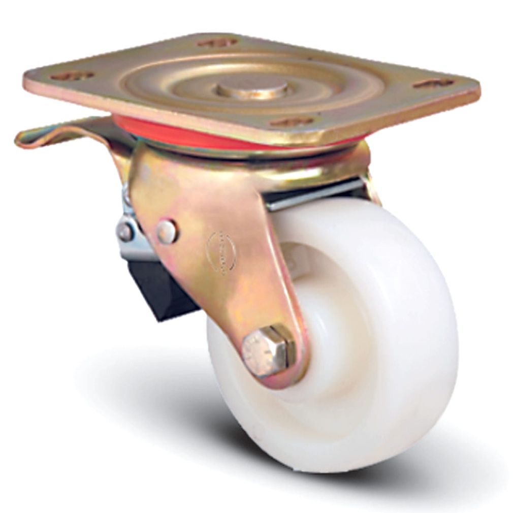 Колесо нейлоновое поворотное усиленный кронштейн с тормозом 200мм ED01-ZKZ-200-F