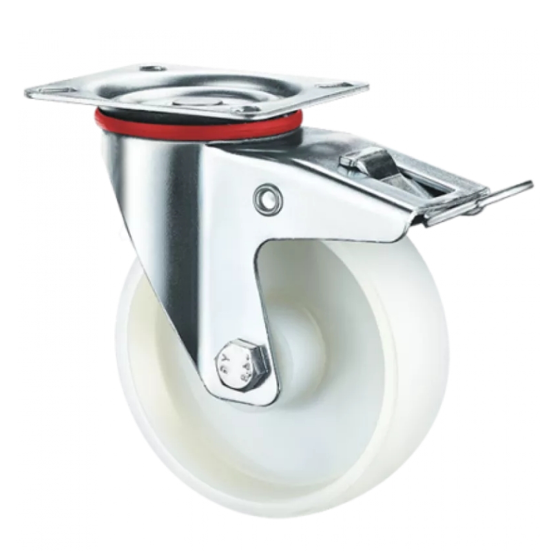 Колесо поворотное полипропилен SRCnb 42 100 мм с тормозом (F) 1047574 используется для перемещения грузов в промышленности.