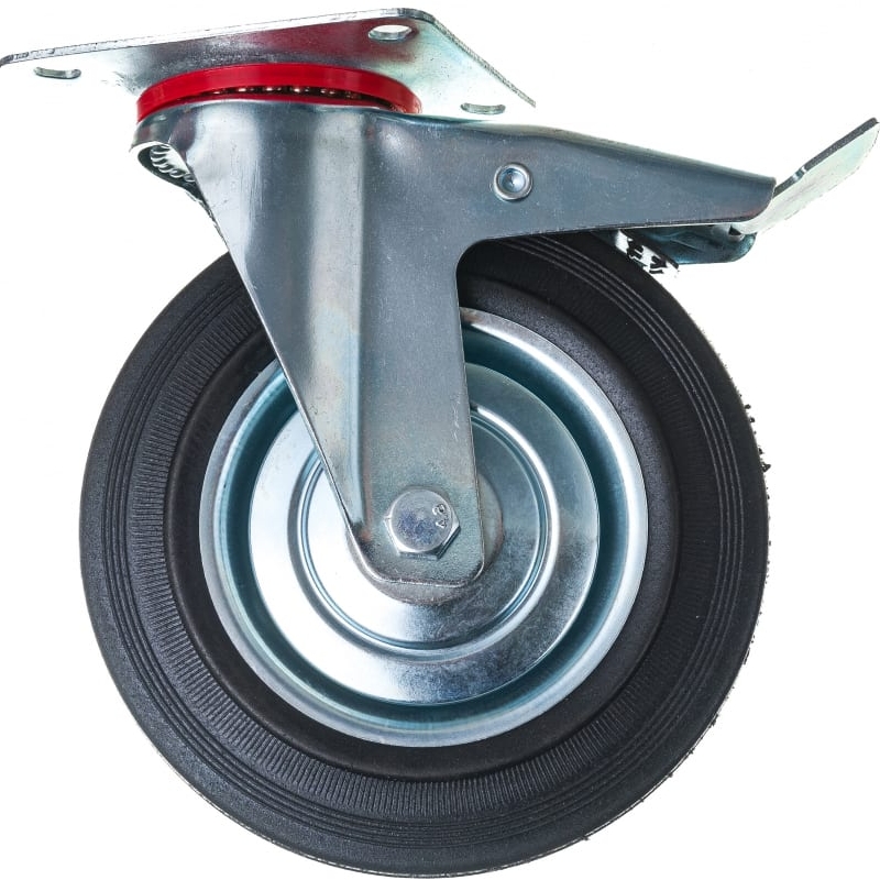 Колесо поворотное серая резина SCB 80 f 200 мм с тормозом используется для придания манёвренности на тележках и другом оборудовании в различных отраслях.