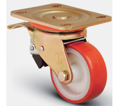 Колесо сверхмощное полиуретановое поворотное с тормозом 150мм ED01 ZBP 150 F