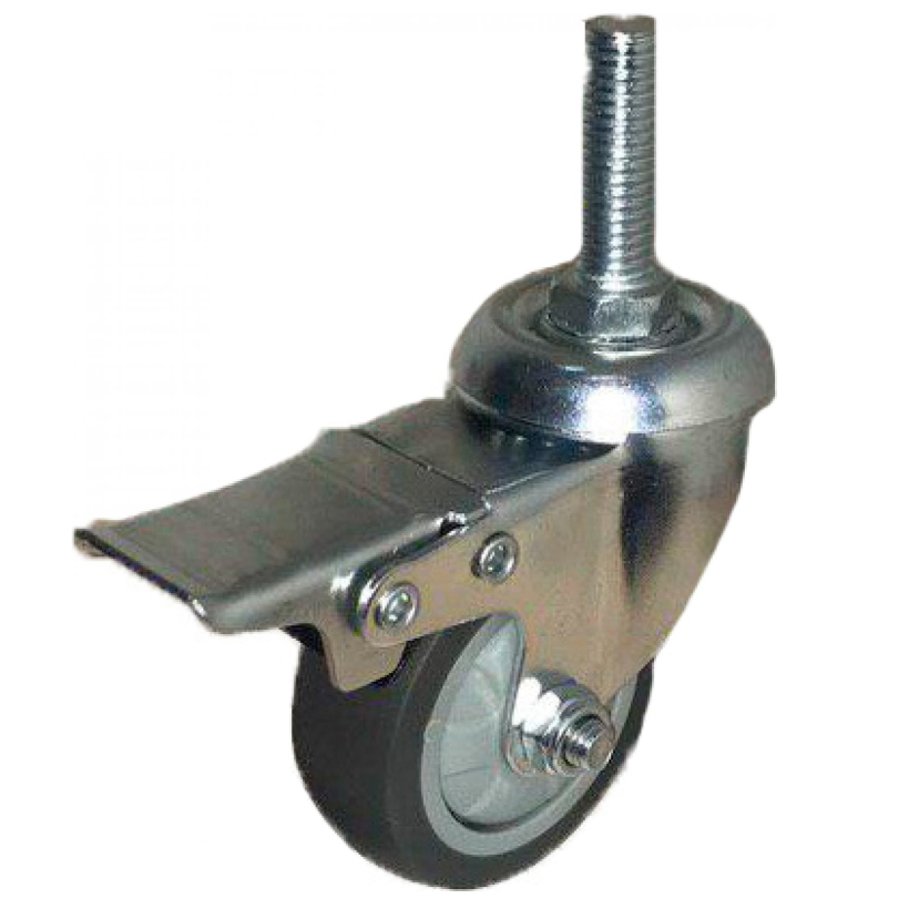 Колесо темная серая мягкая гладкая резина болтовое крепление с тормозом М10 50мм SCTGB25-10 используется для установки на тележки.