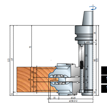 Комплект профилированных фрез Freud D156 l123 Z2 ST16MGC13705 для торцовочного фрезерования поперечных брусьев.