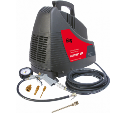 Компрессор FUBAG Assistant Set OL 195 (+ 4 предмета) безмаслянный компрессор с манометрами для работ с пневмоинструментами, для накачки шин, матрасов и других надувных изделий, подходит для побелки потолков и других работ с лакокрасочными материалами.