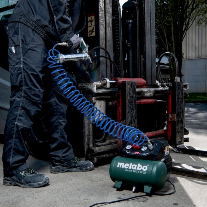 Компрессор Metabo Basic 160-6 W OF 601501000 c удобным 6-литровый компрессором с мощным двигателем для универсального использования. Предназначен для забивания скоб, гвоздей, продувки, наполнения шин, а также для работы с картриджными пистолетами, шприцами для консистентной смазки и заклепочными клещами. Безмасляный поршневой компрессор: простая транспортировка и сниженные затраты на обслуживание.