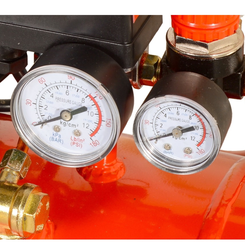 - Манометр позволяет контролировать давление в ресивере и на выход.