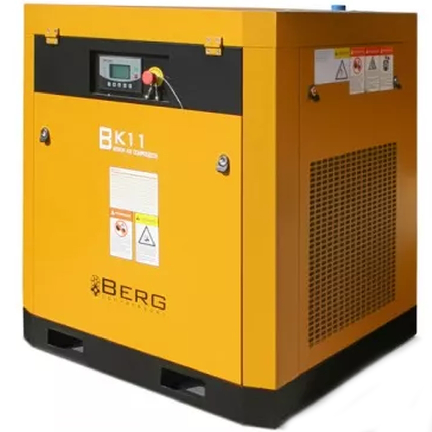 Компрессор винтовой BERG ВК-11 16 бар прямой привод IP54 имеет промышленное назначение и нагнетает воздушную массу типа винтовой пары. Основной задачей винтового компрессора является подача сжатого воздуха пневматической системе. При прямом приводе винтовой блок соединен напрямую с двигателем через эластичную муфту, что минимизирует потери и экономит расходы на электроэнергию.
