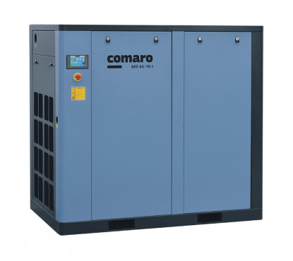 Компрессор винтовой COMARO MD 55-08 I относится к модели из флагманской линейки оборудования известного итальянского производителя. Вы можете купить этот компрессор в нашей компании на очень привлекательных условиях. Он предназначен для подачи сжатого воздуха в объеме до 9800 литров в минуту с давлением до 8 bar. Прямой привод винтового блока передается от двигателя 55 кВт.