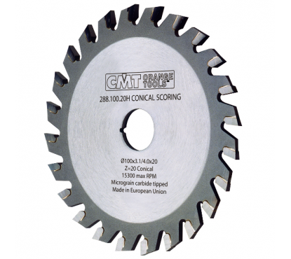 Пила коническая подрезная 288.125.24K СМТ используется для раскроя ламинированных панелей, ДСП, ЛДСП, МДФ без сколов. Дисковая пила позволяют менять ширину паза путем увеличения или уменьшения высоты реза. Лучше всего использовать конические подрезки на ровных заготовках - или на станках с прижимом заготовки. Пила отличается от стандартных подрезок жестким корпусом, зубьями из твердого сплава с содержанием хрома, специальным хромовым покрытием корпуса, предотвращающим налипание грязи на пилу, и более строгими допусками на биение. Подрезной диск работают в паре с основным пильным диском и предназначены для выборки небольшого паза с обратной стороны ламинированной панели для предотвращения сколов. Подрезная пила должна выбирать паз на 0,1-0,2 мм шире, чем пропил основной пилы.