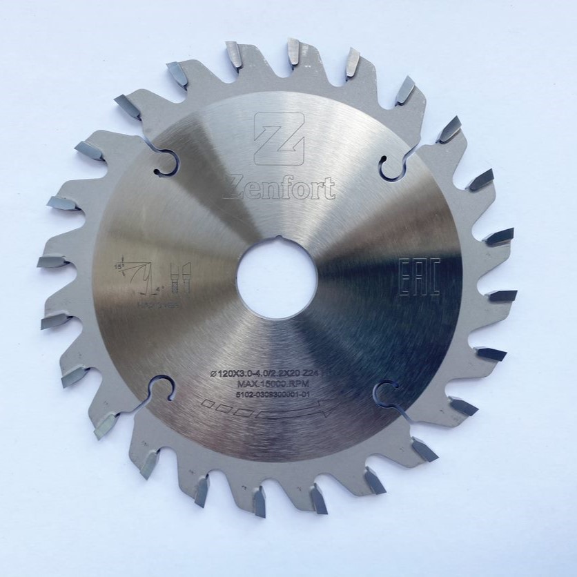 Конический подрезной пильный диск Zenfort HA2 31EA (120x20 3.0-4.0 Z24) позволяют менять ширину паза путем увеличения или уменьшения высоты реза.