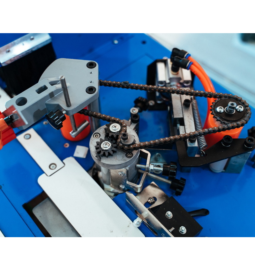 - Поворотный клеевой узел позволяет приклеивать кромку как на прямолинейные, так и на криволинейные заготовкиа с внешним и внутренним радиусом