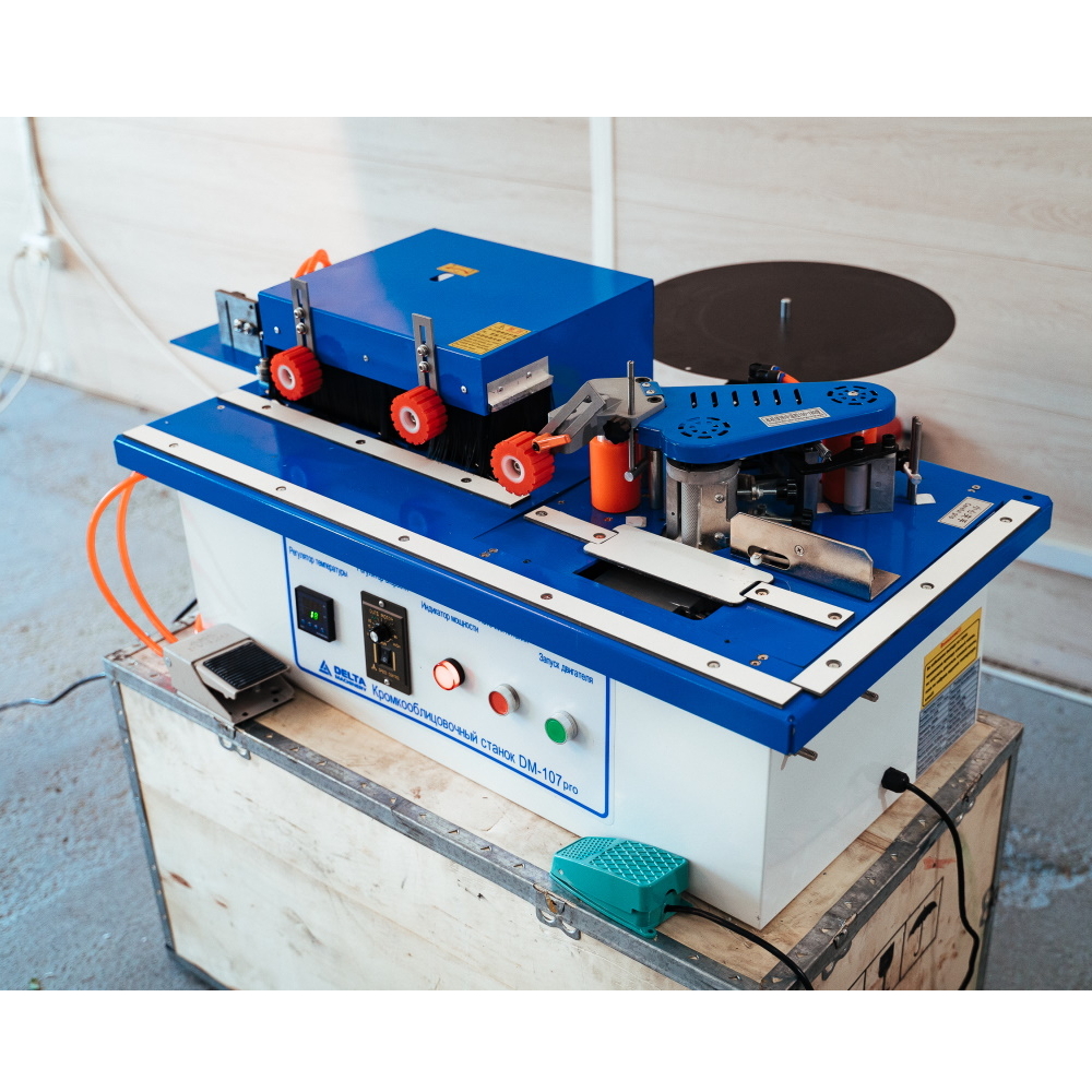 Кромкооблицовочный станок Delta Machinery DM 107 PRO предназначен для оперативного исправления дефектов нанесения кромочного материала. Используется при облицовывании малогабаритных и крупногабаритных криволинейных нестандартных заготовок.
