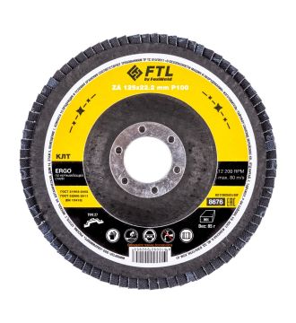 • Круг лепестковый для шлифования по нержавеющей стали FTL Ergo 27 125 х 22,2 мм P100 в термоусадочной плёнке со вкладышем в дополнительном ПЭ пакете – 10 шт.