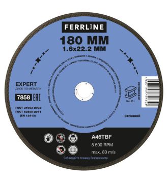 Круг отрезной по металлу Ferrline Expert 180 х 1,6 х 22,2 мм A46TBF