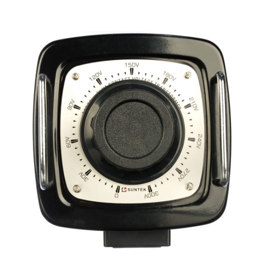 Автотрансформатор ЛАТР SUNTEK является однофазным прибором, который позволяет получить напряжение до 300 Вольт. Есть металлические ручки для удобства переноски.