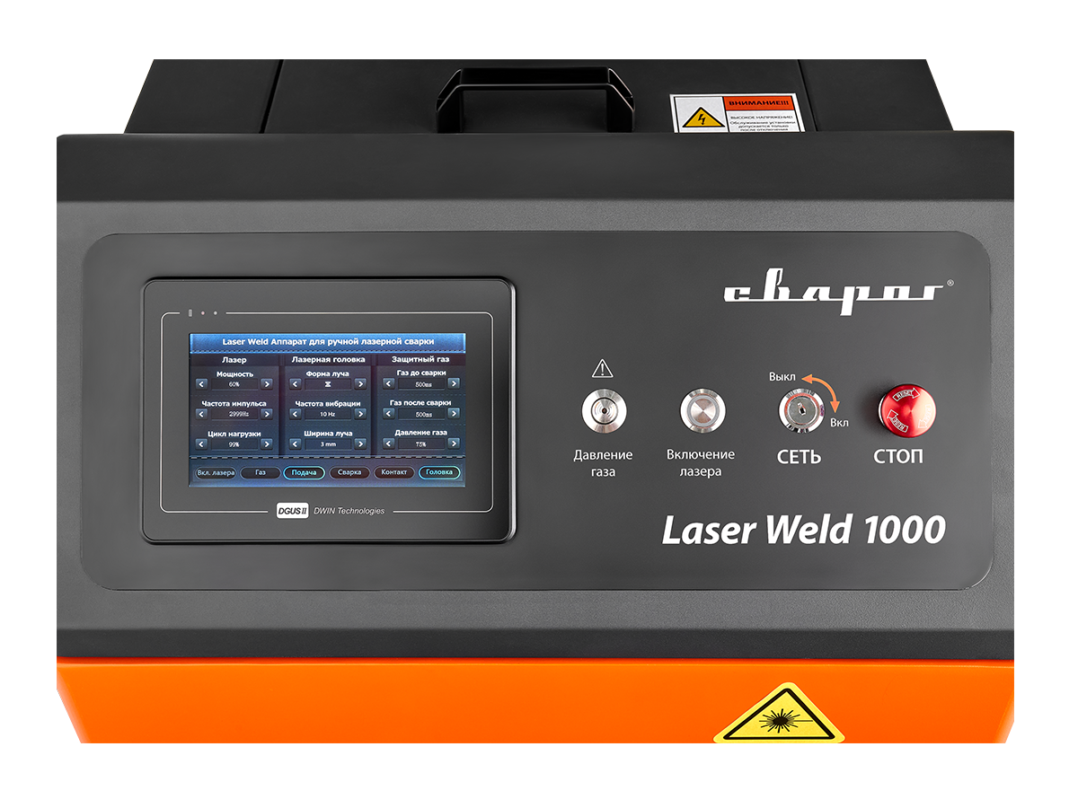 - Лазерная головка оснащена дисплеем, отображающим основные режимы, что повышает контроль за процессом сварки или резки