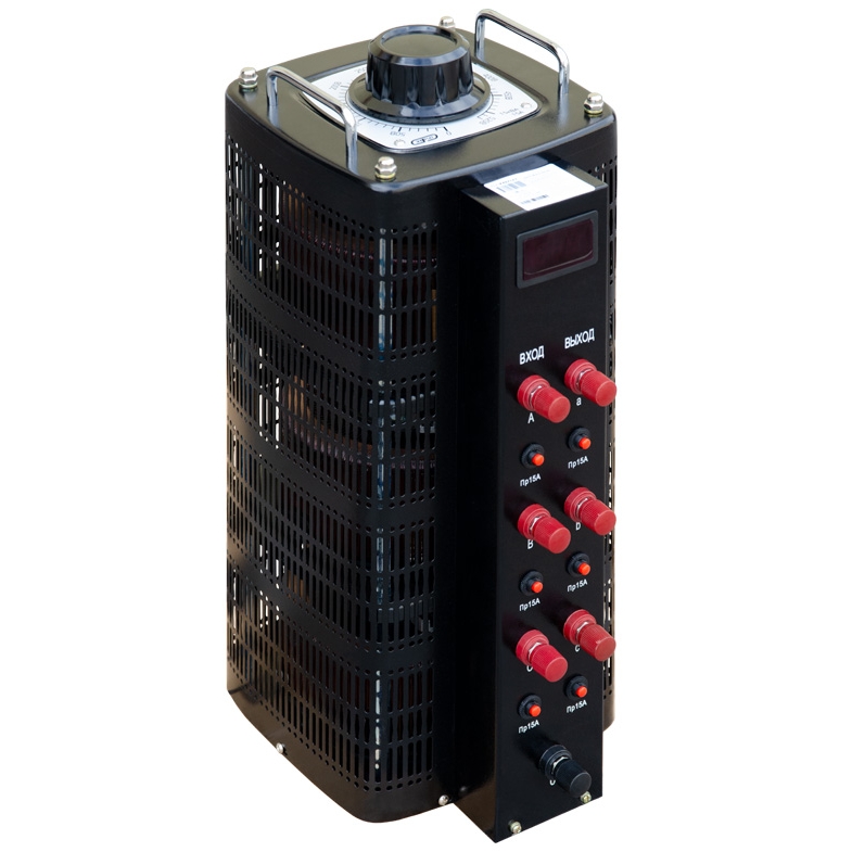 ЛАТР Энергия Black Series 3Ф TSGC2-15кВА 15А 0-520V цифровой предназначен для плавного регулирования фазного напряжения от 0 до 300В под нагрузкой без разрыва цепи в трехфазной сети.