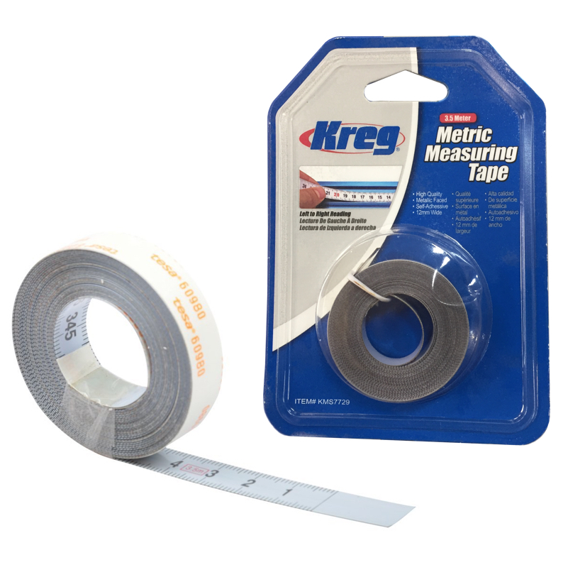 Линейка самоклеющаяся Kreg длиной 3.5 метра с метрической шкалой слева-направо - метрическая лента с самоклеящейся подложкой. Плотно прилегает к выемке на верхней стороне Kreg Top Trak и Heavy-Duty Trak. Металлическая лента очень устойчива к истиранию и может быть обрезана по длине с помощью ножниц.