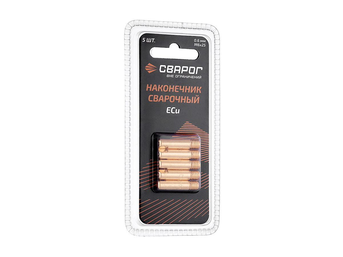 Сварочный наконечник M6×25 E-CU прямой предназначен для подвода сварочного тока к проволоке. Выбирается в зависимости от диаметра и материала используемой сварочной проволоки и типоразмера резьбы вставки под наконечник.