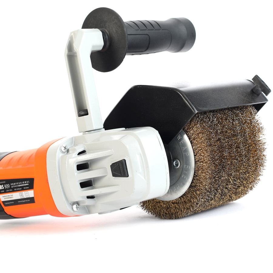 - Большая площадь шлифщетки прикрыта защитным кожухом, который предотвращает распространение пыли из зоны обработки