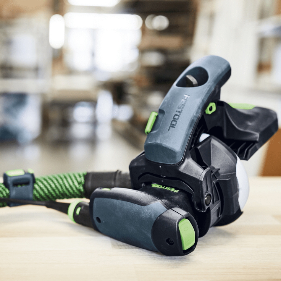Машинка для шлифовки кромок FESTOOL ES-ETSC 125 3.0 I-Plus используется для шлифования строганых или опиленных торцов деревянных заготовок под точно заданным углом без опрокидывания машинки, а также для доводочной обработки кромок.
