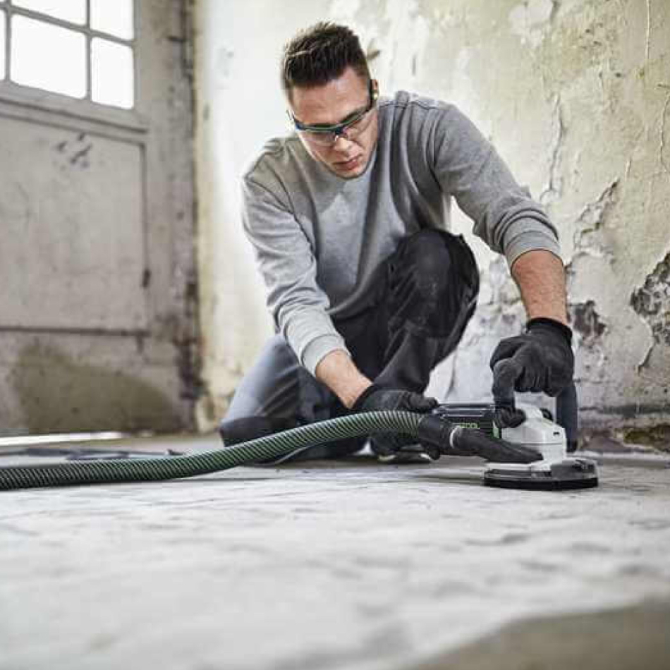 Машинка шлифовальная алмазная RENOFIX FESTOOL RG 130 ECI-Plus используется для шлифовальных и обдирочных работ по большим поверхностям. Есть возможность съёма материала у самой стены благодаря откидному сегменту.