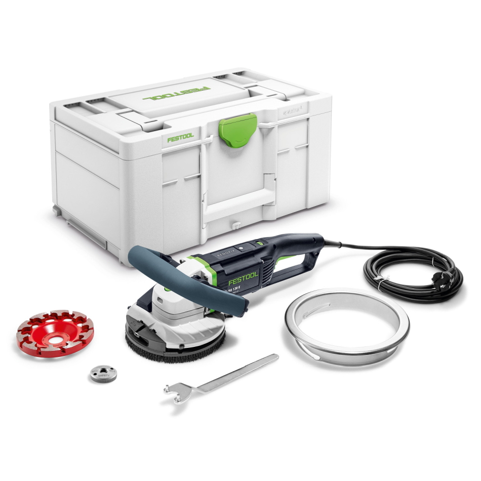 Машинка шлифовальная алмазная RENOFIX FESTOOL RG 130 ECI-Set DIA AB используется для шлифовальных и обдирочных работ по большим поверхностям. Есть возможность съёма материала у самой стены благодаря откидному сегменту.