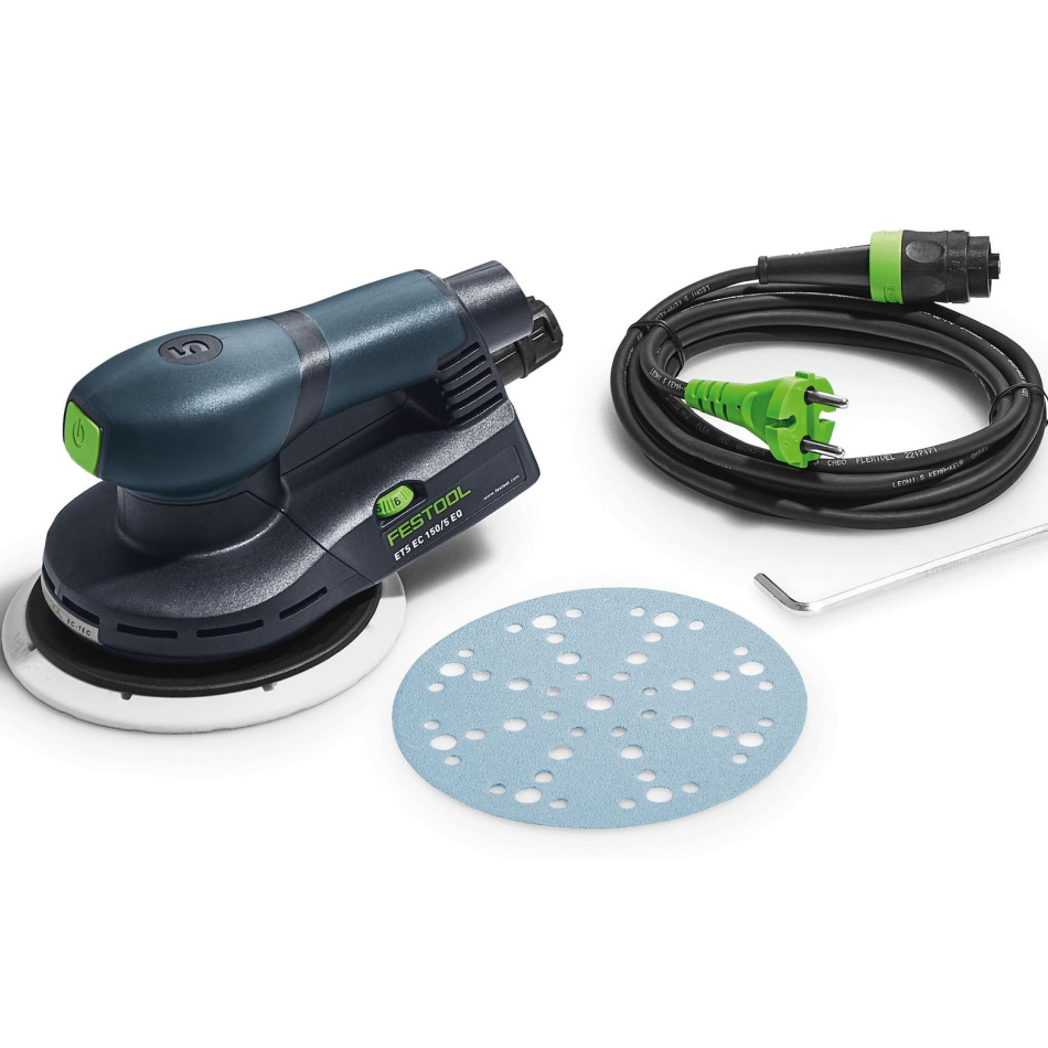 Машинка шлифовальная эксцентриковая FESTOOL ETS EC150/5 EQ используется для шлифования различных материалов вплотную к кромке, подшлифовки переходов в местах ремонта, а также для чистового или предварительное шлифование небольших поверхностей.
