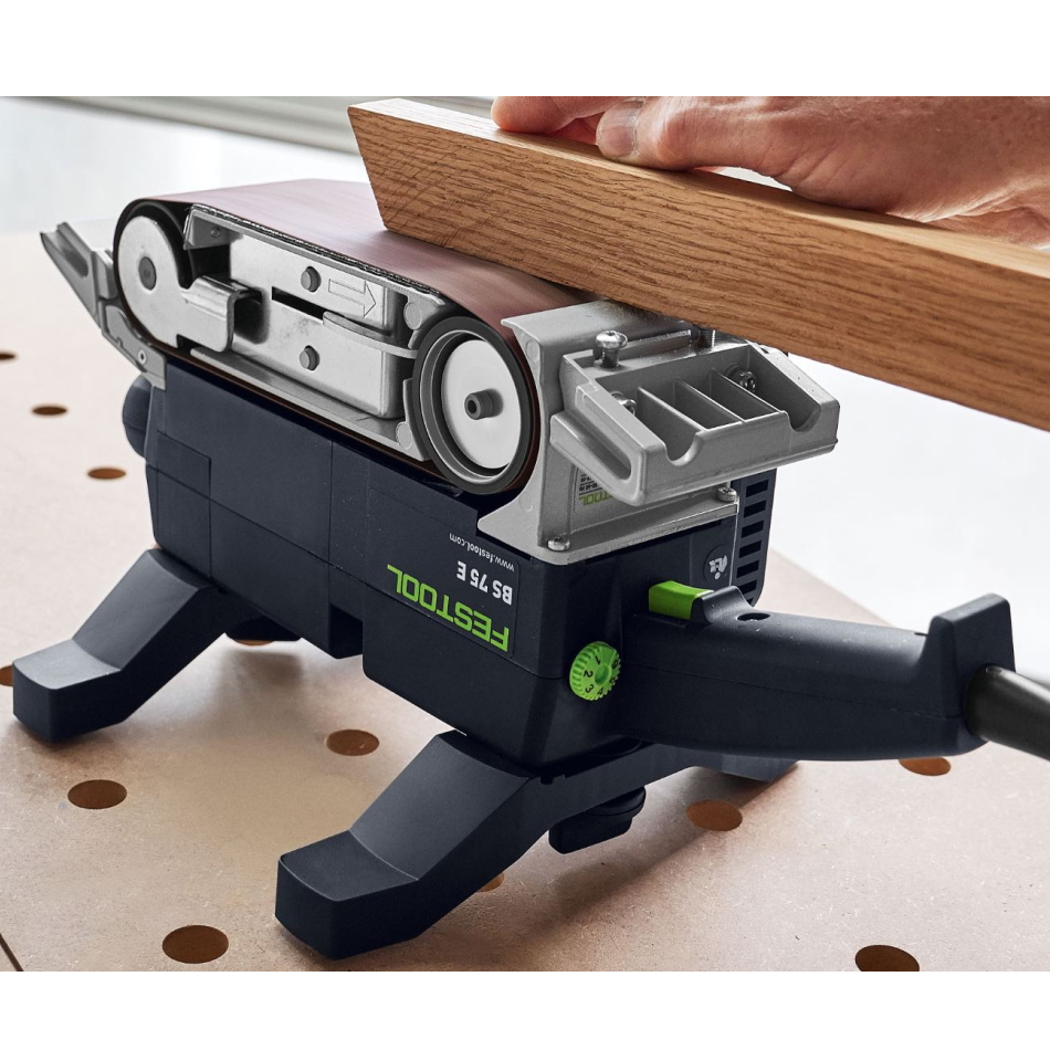 Машинка шлифовальная ленточная FESTOOL BS 75 E-Plus используется для плоского шлифования поверхностей, подшлифовки высококачественных и шпонированных поверхностей, вышлифовывания выбоин от рубанка, а также для шлифования реек в стационарном положении.