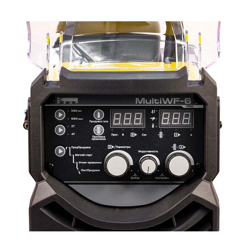 Механизм подающий КЕДР MULTIWF-6 используется для подачи проволоки. На устройстве подачи проволоки дублируются все органы управления сварочного источника, что позволяет осуществлять настройку всех параметров непосредственно с подающего устройства.