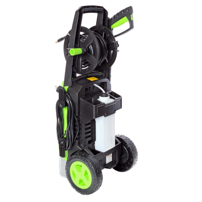 - Специальная встроенная катушка с удобной рукояткой для сматывания шланга высокого давления