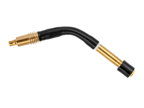 Специальная конструкция гусака позволяет изгибать его практически под любым углом относительно центральной оси, максимальный угол изгиба — 270º. Это существенно расширяет возможности позиционирования горелки в пространстве и обеспечивает комфортную сварку в любых пространственных положениях.