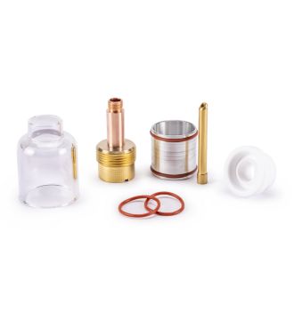 Набор с прозрачным соплом для TIG сварки FOXWELD GLASSY №4 используется с горелками TP-17, TP-18, TP-26 для сварочных работ с вольфрамовыми электродами диаметром 2,4 мм. Прозрачное сопло из термостойкого кварцевого стекла не боится ударных нагрузок, улучшает обзор в процессе сварки, защищает сварочную ванну и формирует равномерный поток защитного газа. Набор GLASSY № 1 подходит для визуального контроля сварочного процесса – для обучения, демонстрации сварки или для специалиста, который следит за качеством сварного шва.