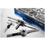 Набор метчиков и плашек ЗУБР 110 предметов используется для нарезания и калибрования внутренней и внешней метрической и трубной резьбы в сквозных и глухих отверстиях в сталях, цветных металлах, пластике.