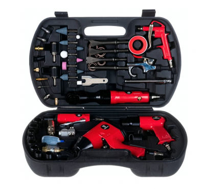 - В наборе пневматическая шлифовальная машина, пневматический гайковерт, пневматическая трещетка, пневматический молот