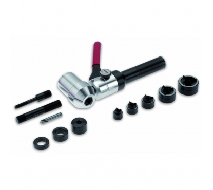 Набор с 5 пробойниками (штампами) CIMCO DIAMANT и поворотным гидроприводом подходит для стальных листов, пластика и алюминия.
