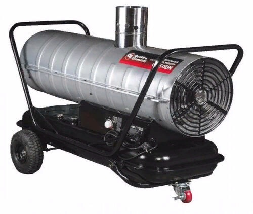 Нагреватель воздуха - используется для бытового или промышленного применения. Образующиеся при сгорании топлива выхлопные газы отводятся за пределы помещения с помощью специальных воздухоотводов (поставляются отдельно). Корпус изготовлен из стального профиля и покрашен термостойкой краской. Камера сгорания выполнена из нержавеющей стали. Встроен цифровой дисплей, благодаря которому можно контролировать режимы работы и заданную температуру. Оснащается пневматическими колесами, что увеличивает мобильность.
