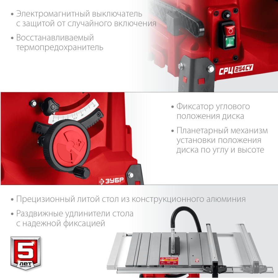Технические характеристики напольного распиловочного станка ЗУБР СРЦ-254су 1900 Вт