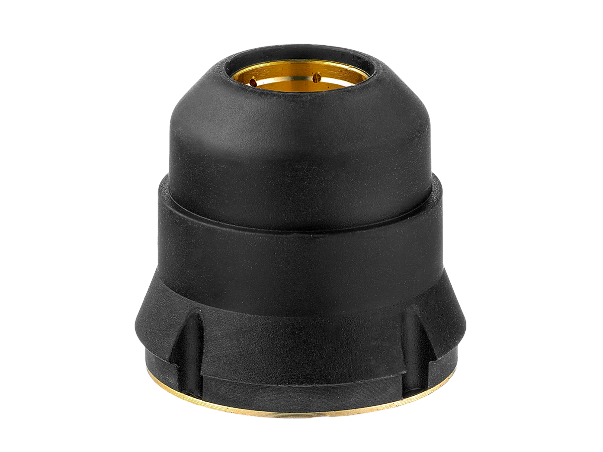 - Выполняет подачу вторичного защитного газа к выходу из сопла для формирования плазменной дуги. Во время работы поток защитного газа под давлением проходит внутри сопла и подается в зону резки, а затем выдувает расплавленный металл за ее пределы.