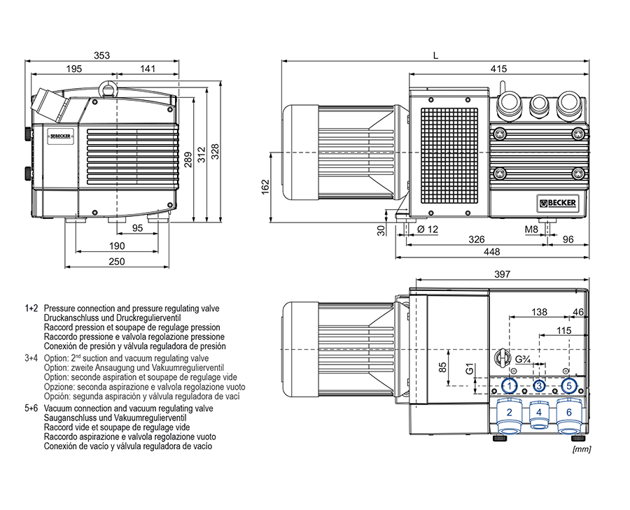 Технические характеристики насос-компрессор пластинчато-роторный сухой Becker DVT 3.80: