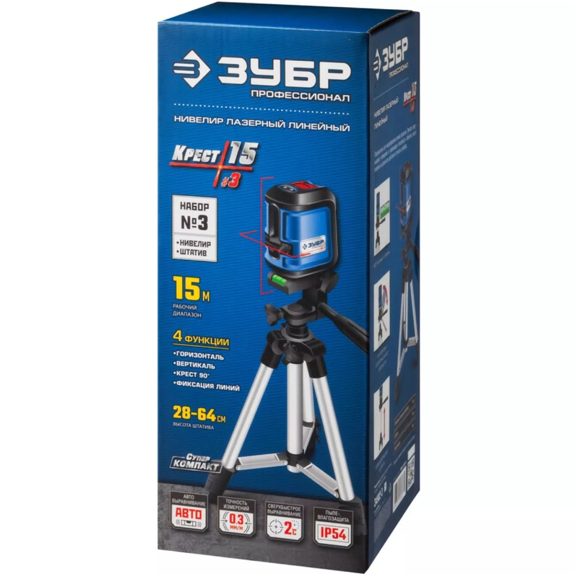 Нивелир лазерный ЗУБР КРЕСТ-15 суперкомпакт 15м точность +/-0,3мм/м штатив чехол